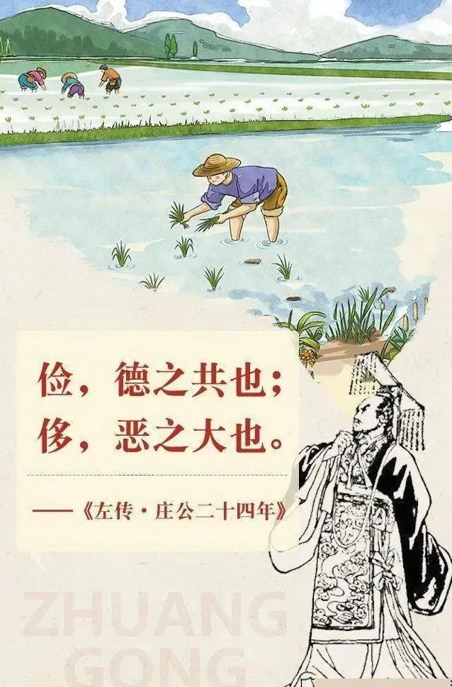 此句出自《左传·庄公二十四年》。共:大。侈:奢侈。本句意思是节俭是一切美德中最大的大德,奢侈,是邪恶中最大的恶。原文:二十四年春,刻其桷,皆非礼也。御孙谏曰:臣闻之:俭,德之共也;侈,恶之大也。先君有共德而君纳诸大恶,无乃不可乎!