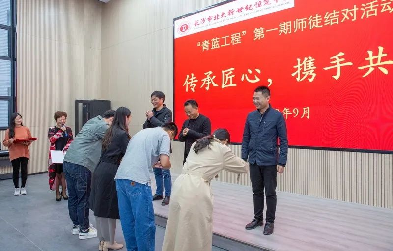 颁发聘书和证书环节之后,徒弟向师傅行拜师礼。