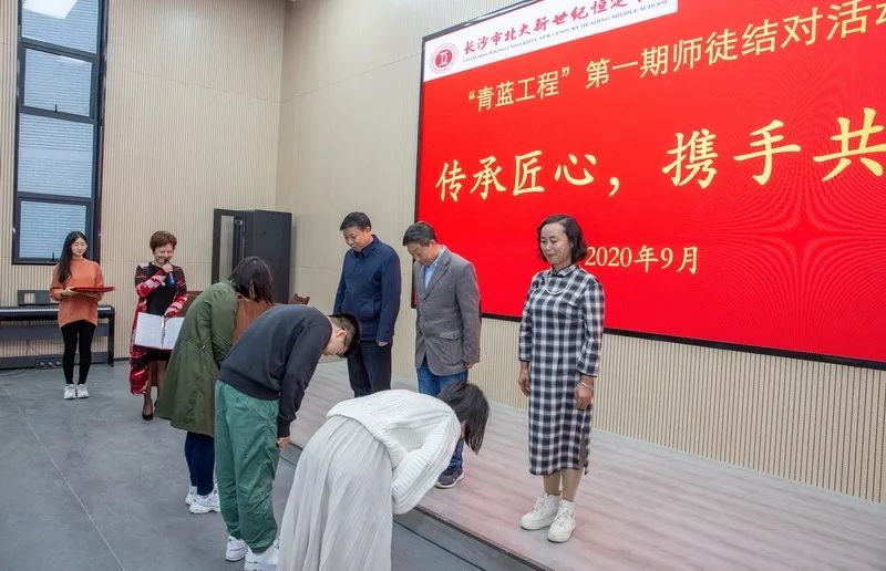 据悉,恒定中学每年都将进行一次青蓝工程结对仪式,借此进行敬业爱岗和为人师表的教育。