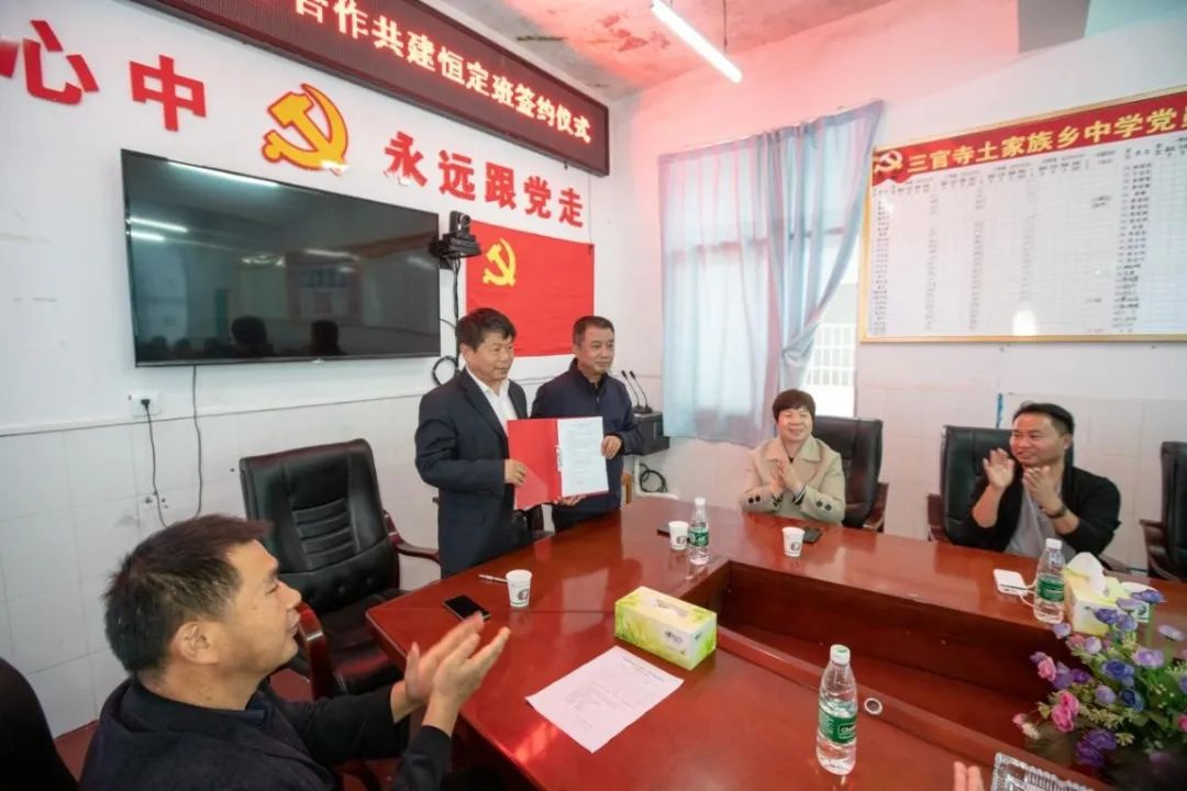 29日,三官寺中学与恒定中学在愉快的氛围中签订了“恒定班”合作办学协议。