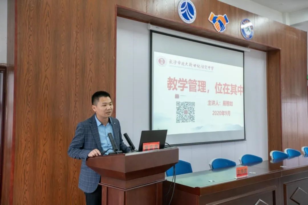 恒定中学教务处易戆如主任以《教学管理,位在其中》为题,从“品德”、“文化”、“思辨”、“价值”四个方面,向三官寺中学全体教师畅谈了自己对“教师”二字的理解。