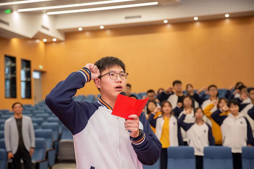 袁德平老师作为教师代表发言,随着高考的脚步临近,同学们的焦虑感也与日俱增,但希望同学们能回忆起刚入校园的那份执着与坚定,用信心来战胜恐惧。并且,同学们要坚信自己并不是孤军奋战,高复所有老师都陪伴着同学左右,不在身旁的父母也在为同学们加油鼓劲。夜深人静之时,不如幻想大学的美好生活,让对大学的憧憬为自己加加“油”,最后,他希望大家能明确目标,细化任务,沉浸学习,心无旁骛。