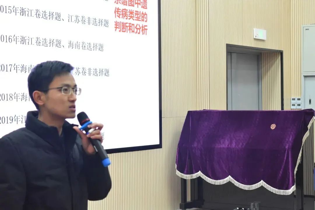 曾东方老师以扎实的功底和对高考清晰的把握首发开场。在讲解高考遗传题中,曾东方老师不仅紧扣解题方法,还将融入对生活中的遗传病的剖析与优生优育的理念,让题目有了更多的现实意义。讲完后,生物教研组长周卓娅老师给予了充分的肯定,认为这是一个非常成熟且完善的讲题。